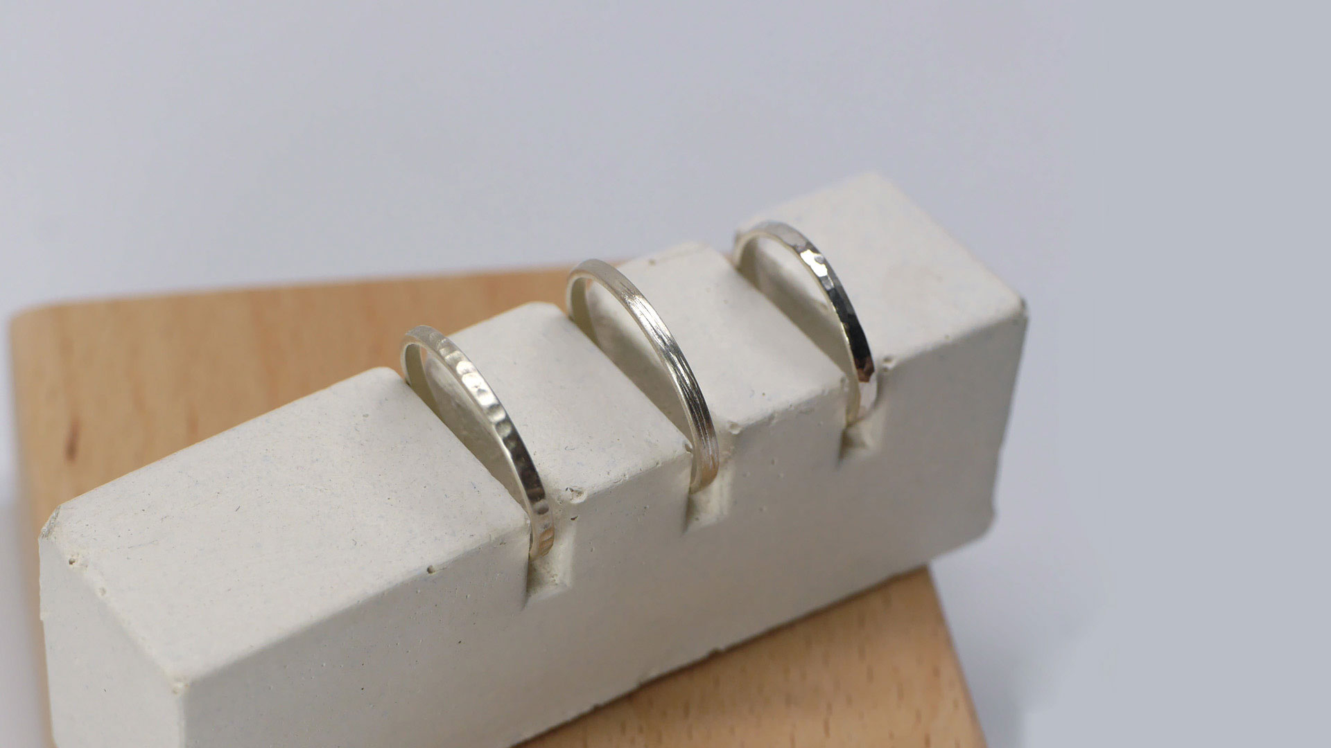 多款設計師手工製作的自然紋理戒指,開口式設計給不確定尺寸的您一個開放式的選擇。款式均可訂做不同寬度和戒圍。更多需求可聯繫設計師討論。